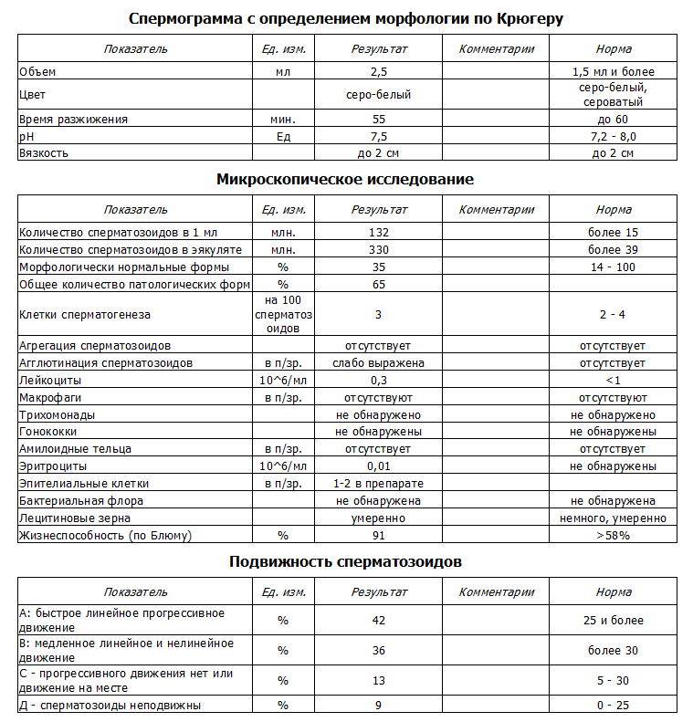 - микроскопические показатели, включая концентрацию сперматозоидов, их общее количество, подвижность и жизнеспособность.