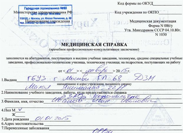 Справка 086у для поступления – рисковать или покупать?