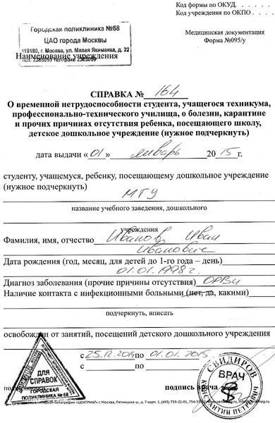 Официальная форма справки 095 у от врача – это оправдательный документ, позволяющий не посещать занятия: